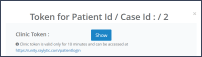 Step 4: By clicking on “Show” (next to “Clinic Token”) a token for the tablet access will be generated. The Token will be created ad hoc and is valid only for 10 minutes to ensure correct patient authorization.
