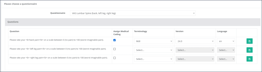After changes are saved, the above-mentioned steps can be repeated for all questionnaires where medical coding should be assigned.