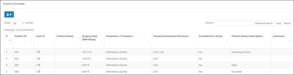 Step 1: Patients can be added under the menu section “Study Overview” and the subsection “Patients”.