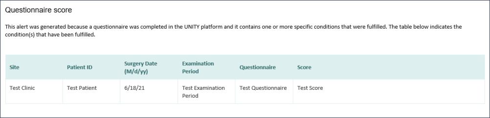 Please note: Definition of site-specific alerts is only possible if the corresponding questionnaire is assigned site-specifically.