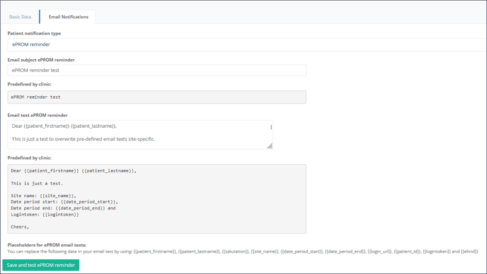 Settings already defined in a clinic will appear as “Predefined by clinic” in the tabs and will be used for this site (see Figure 4). Custom site settings will however overwrite these.