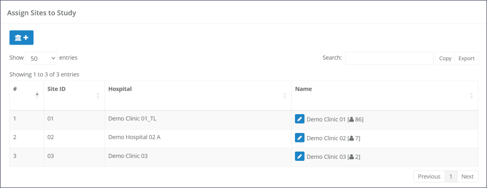 The “Name” of the site, with the number of patients that are enrolled in this site in [squared brackets] (Figure 2)