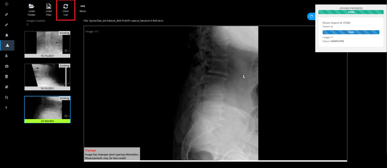 To proceed with the upload of images from a further patient, the list of selected images needs to be cleared by clicking on the button “Clear List” (Figure 10). With this step, only the preview-section will be cleared without affecting the upload process for other images.